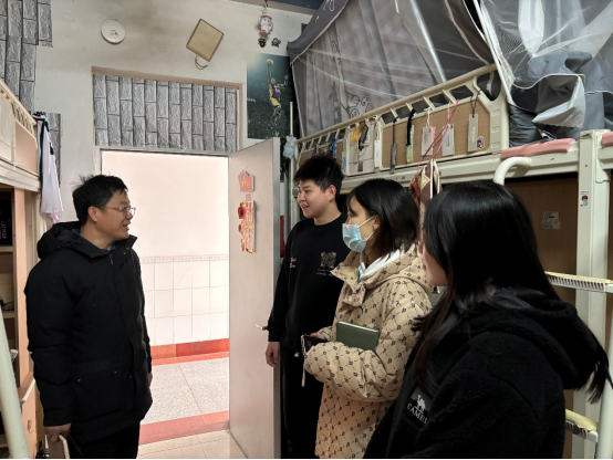 为进一步落实学校安全工作相关要求,加强学生宿舍安全管理,及时发现并消除宿舍存在的安全隐患,营造安全、文明的宿舍环境,2025年2月25日上午,9728太阳集团党委副书记卢志同带领部学生工作组、教练员深入学生宿舍,开展安全卫生检查。