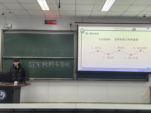 此外,他指出考研并非盲目追求成绩和分数,关键要找到适合自己的发展方向,制定清晰的成长规划。宋烽岩对师弟师妹们寄语道:“大学时光看似漫长,实则转瞬即逝。希望大家勇敢地去尝试、去探索,不要害怕犯错,更不要畏惧困难,确定目标就要持之以恒地为之努力。相信自己拥有无限的潜力,只要用心去规划、去拼搏,定能在自己热爱的领域发光发热,收获属于自己的成功。”
