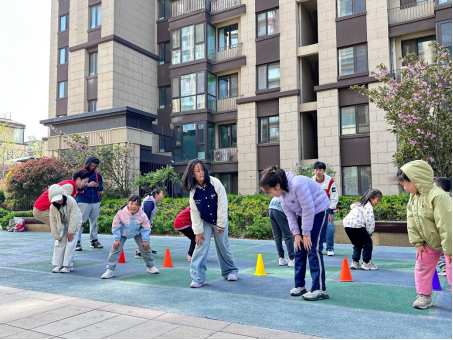 活动伊始,由9728太阳集团学生志愿者带领10余名社区儿童进行慢跑热身,让身体逐渐进入运动状态,并指导社区儿童完成静态拉伸,充分活动关节、放松肌肉,为后续训练打下基础。在“方形跑”环节,孩子们需要围绕方形区域,交替完成竖向行进间小步跑和横向跨步动作,志愿者们一边示范标准动作,一边耐心纠正小朋友们的姿势,鼓励大家保持节奏、大胆跨步,锻炼了孩子们跑动时的协调性,激活了腿部肌肉和髋关节灵活性。“听口令抢锥形桶”环节中,志愿者组织孩子们两人一组背对站立,当志愿者随机喊出数字“1”时,两人迅速转身抢夺锥形桶,五轮紧张刺激的比拼让孩子们在欢声笑语中提升了反应速度和身体控制能力。最后,在“红绿灯”游戏环节,志愿者手持红绿警示牌,举起绿色警示牌时示意小朋友们向前快跑,举起红色警示牌则立即后退,通过信号变化,孩子们反复练习启动、减速和方向控制,脚下协调性得到有效训练。活动结束后,家长们纷纷表示,这种寓教于乐的体适能课程既锻炼了孩子们的身体,又培养了运动兴趣。