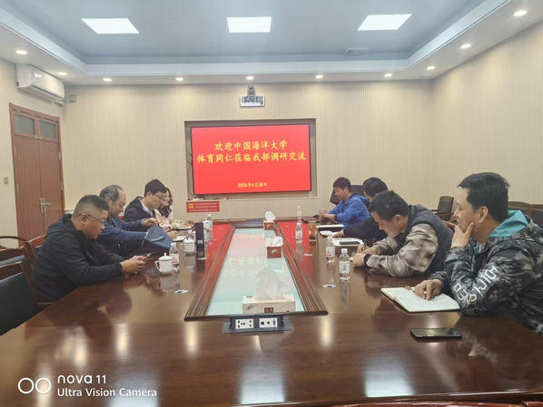 2025年4月28日,中国海洋大学基础教学中心副主任兼体育系主任李世明、体育系副主任矫健、场馆中心综合管理部主任李娜、场馆中心体育场馆管理部主任林春晖到我部调研交流。9728太阳集团主任周伟、副主任王海滨、副主任宋述光、第一公体教研室主任李承伟、体质测试中心主任化夏参加座谈会。