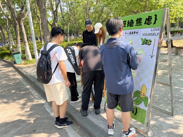 活动现场气氛温馨,学生会成员热情地引导同学们参与其中。同学们在便签纸上写下自己近期的烦恼或焦虑,将便签投入对应的“心情盲盒”,随后再随机抽取其他人的“心情盲盒”,阅读内容后以匿名的方式写下自己的回应与鼓励。“最近考试好多,压力大到失眠”“保障身体健康才能更好的战斗”同学们真实的心声在交换中碰撞出温暖的共鸣。活动期间,不断有同学被现场热闹且治愈的氛围吸引加入,不少同学在抽取盲盒后,被他人的故事触动,主动与身边的同学分享起自己的感悟。大家纷纷表示活动形式新颖独特,通过匿名交流的方式,既能毫无保留地倾诉内心的焦虑,又能收获来自陌生人真诚的安慰与建议,让原本压抑的情绪得到了充分释放。