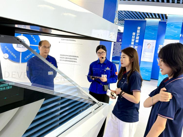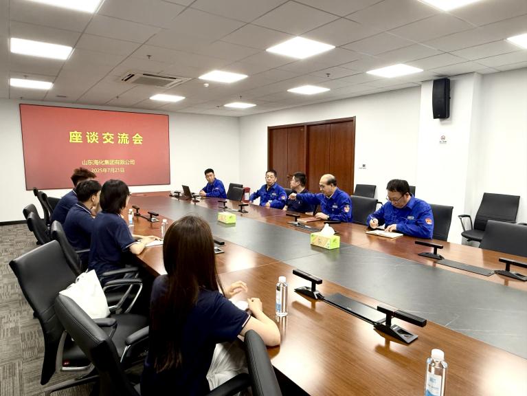 7月21日,实践队一行前往山东海化股份有限公司展览馆与弘润石化科技有限公司进行学习调研。在山东海化股份有限公司,公司一系列推动绿色发展的创新实践令实践队员印象深刻。讲解员详细介绍了山东海化股份有限公司纯碱厂的发展历程以及海卤水淡化浓缩及工厂化制盐卤技术如何通过创新工艺实现海水资源的高效利用,指出该项技术不仅降低了生产过程中的污染物排放,还大幅提升了资源的利用转化率。实践队队员们通过实地参观学习,亲身见证了绿色技术如何为化工产业注入减排增效的强劲动力,强化了对“绿水青山就是金山银山”这一发展理念的认知感悟。