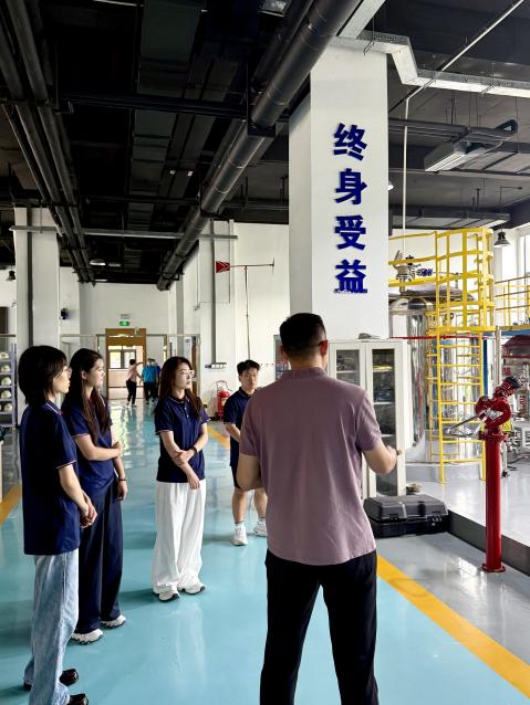 7月22日,实践队一行抵达山东潍坊公共实训基地,参观期间,讲解员重点介绍了绿色化工模拟教学系统,其中包括废水处理VR实训、安全应急演练平台等内容,并安排队员们进行实践操作,使大家切实理解了在可视化、可操作、可实践过程中学习的要义。队员们纷纷表示,先进的实训设备与创新的培养模式,让大家看到了科技赋能绿色发展的坚实基础,体悟园区“产学研用”一体化培养绿色技术人才的创新模式。