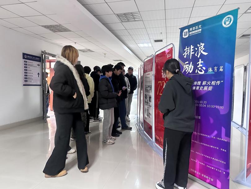 活动伊始,团支书冯婧杰带领全体同学参观体育馆内的“油脉体魄 薪火相传”体育发展史展览。展区文字资料详实、历史图片珍贵,清晰展现出学校体育事业从起步到蓬勃发展的历程。同学们驻足观看、认真聆听,在回顾历史中体会几代体育人的奋斗岁月,加深了对校光荣体育传统的感性认知。