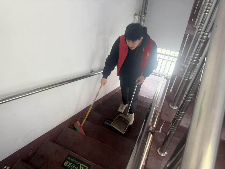 随后,志愿者们开展“温馨家园”卫生清洁行动。他们手持扫帚、抹布,细致清扫院落、擦拭门窗,连走廊扶手、楼梯台阶都一一擦拭干净。