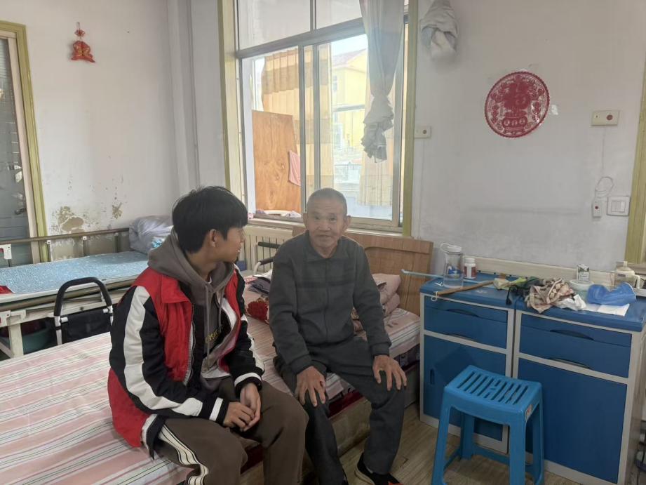 活动伊始,志愿者们开启“岁月对话”环节,与老人们围坐畅谈。五十年代出生的爷爷抚摸着墙上的老照片,眼含热泪回忆道:“我小时候总饿肚子,冬天穿不上棉鞋,冻得脚趾头都生了疮。现在国家强大了,我们每月有养老金,看病能报销,逢年过节还有志愿者来陪,真是生在红旗下,生活真是越来越好了!”。同时,四十年代出生的王奶奶则拉着志愿者的手,语重心长地说:“孩子们啊,我们当年想上学没条件,现在条件这么好,可不能浪费。”学生志愿者焦佳樾蹲在老人身边,认真聆听后眼眶微湿:“爷爷奶奶们的经历让我明白,今天的幸福生活是几代人奋斗的结果。我们不仅要传承他们的奋斗精神,更要成为传递温暖的桥梁。”