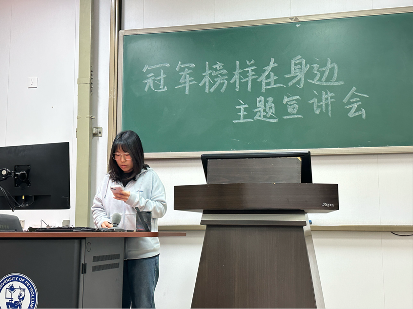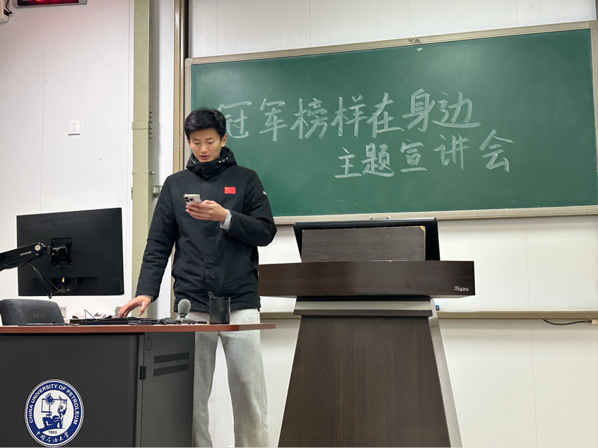 为发挥优秀学子的榜样引领作用,进一步激发同学们的学习动力与训练热情,9728太阳集团于2025年10月27日在南堂216成功举办“冠军榜样在身边”主题宣讲会。本次宣讲特邀国家奖学金推荐人冯婧杰,国家励志奖学金推荐人刘冲、李浩三位同学担任主讲人,给同学们分享学训经历和学习心得。
