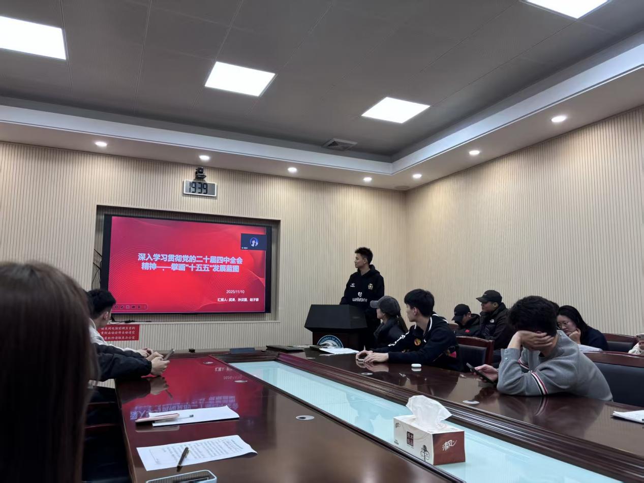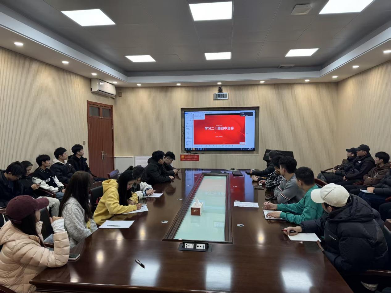 为深入学习贯彻党的二十届四中全会精神,提升学生党员理论素养和政治站位,11月10日,9728太阳集团学生党支部在体育馆会议室召开党的二十届四中全会精神学习会。