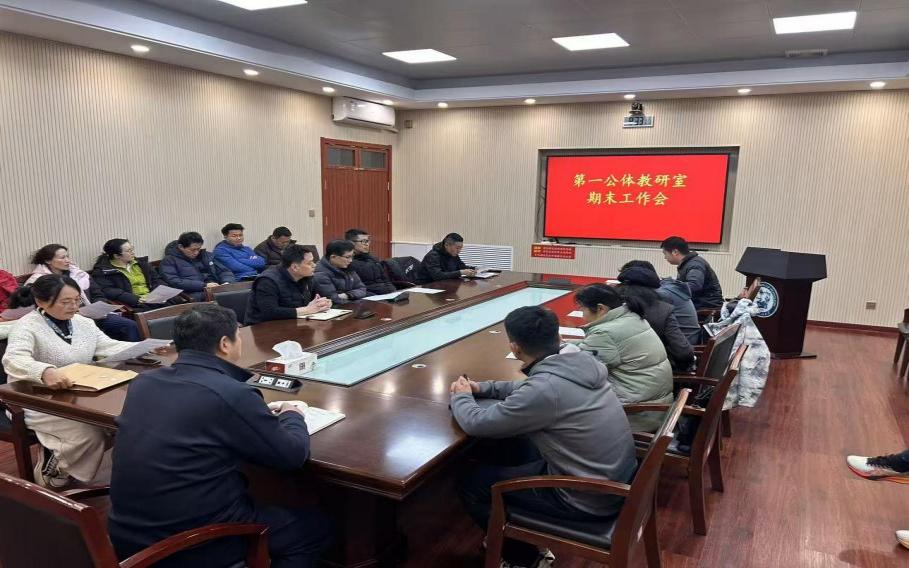 2025年12月25日,第一公体教研室在体育馆会议室召开期末工作会议暨2025年度教职工考核会,会议由教研室主任化夏主持,全体教师参会。