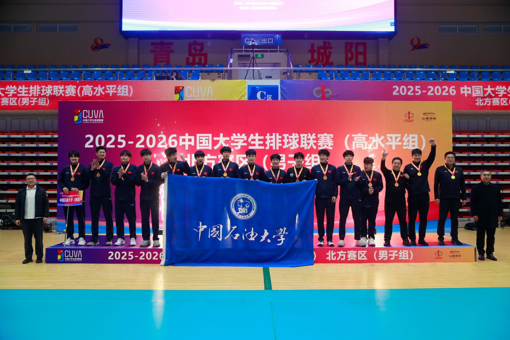 石大男排获得2025-2026中国大学生排球联赛(北方赛区)冠军,这也是我校高水平男子排球队继2016年首次折桂中国大学生排球联赛北方赛区后,第6次夺得该项比赛的冠军。石大高水平男篮获第27届CUBAL中国大学生篮球联赛一级联赛东北赛区第六名晋级全国赛,获第28届CUBAL中国大学生篮球一级联赛(山东省)基层赛季军,石大阳光组男篮获第28届CUBAL中国大学生篮球二级联赛(山东省)基层赛冠军。石大乒乓球队在山东省大学生乒乓球锦标赛中获得2金5银4铜,荣膺团体总分“一等奖”,创造了校乒乓球队历史最好成绩。石大田径队在山东省大学生田径锦标赛中获得了5金3银。2025年学校阳光运动队参加省级各类比赛共获冠军15项。