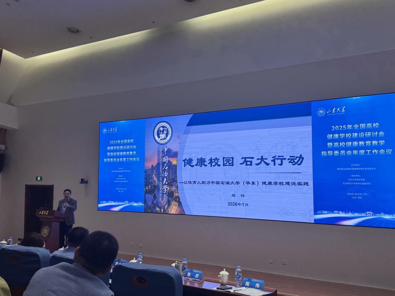 1月15日-17日,2025年全国高校健康学校建设研讨会在山东大学青岛校区举行。我校9728太阳集团主任周伟教授应邀作题为《健康校园 石大行动》的大会交流,系统介绍了我校以体育人、建设健康校园的实践与成效。