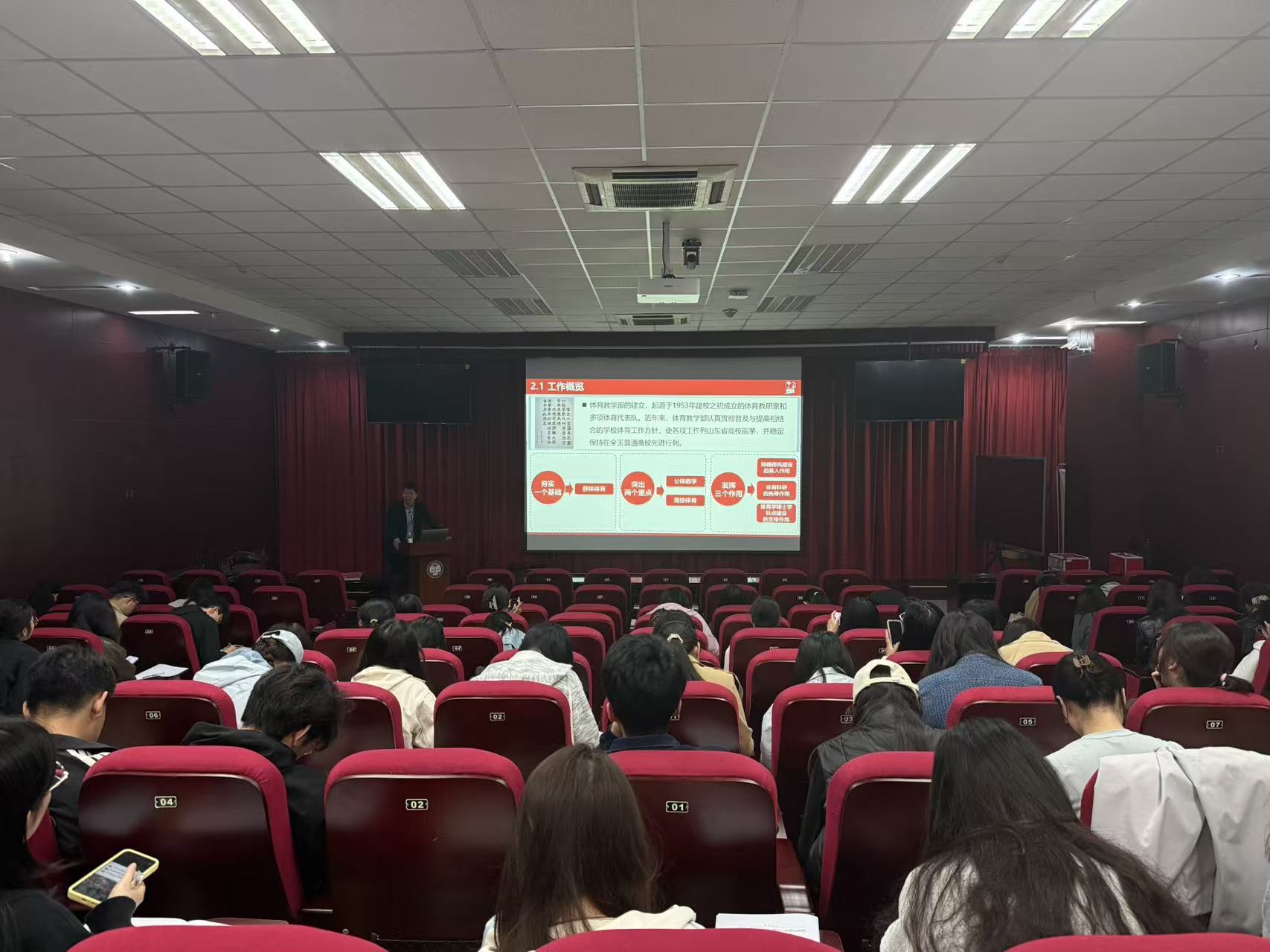 姜永增从“学习学校光荣传统,弘扬践行石大精神”“传承光荣体育传统,领悟深厚体育文化”“学习汲取榜样力量,竞技体育勇攀高峰”三个方面进行讲解。在党课第一部分,他对北京石油学院、华东石油学院、石油大学、中国石油大学四个时期的办学历程进行分享,阐释学校因油而生、为国育才的使命担当。党课第二部分,他从北京石油学院时期的“体育先锋营”说起,对学校辉煌的竞技体育史、丰硕的公共体育史、扎实的群众体育史等进行讲述。党课第三部分,姜永增系统总结学校高水平运动队自建队以来取得的辉煌成绩,生动展现石大体育人顽强拼搏、追求卓越的精神风貌,勉励全体发展对象以榜样为标杆,把体育精神融入学习工作。